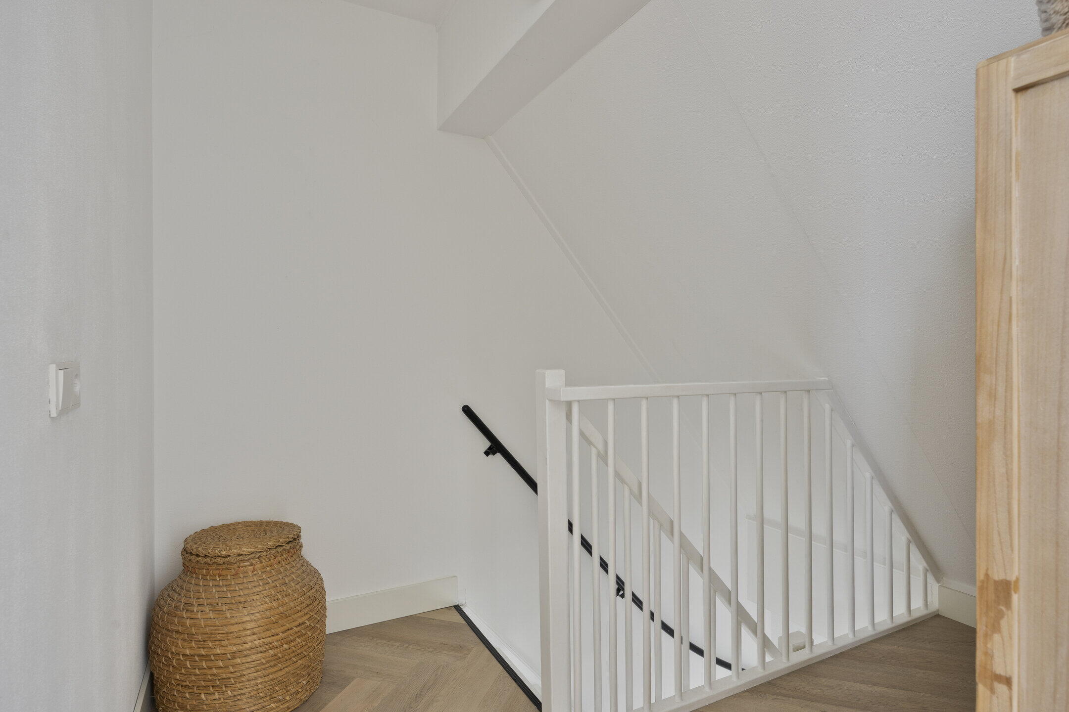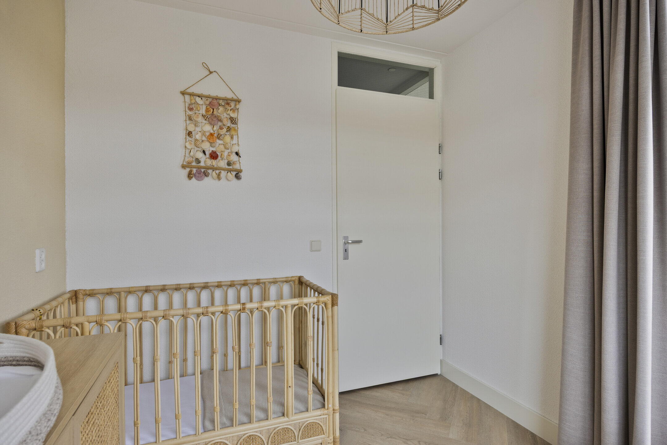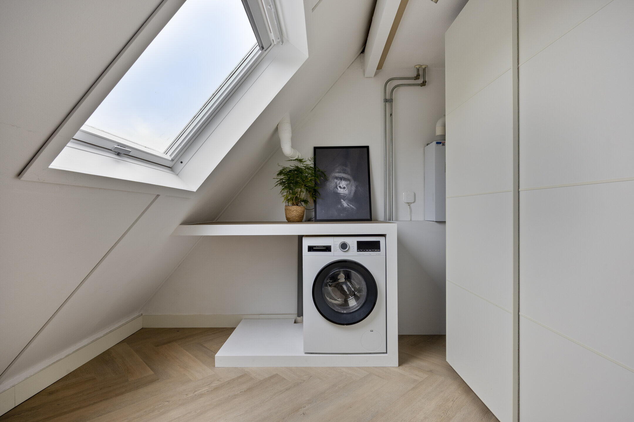 Via een vaste trap bereik je de tweede verdieping. Hier vind je nog eens twee slaapkamers, waarvan één met een balkon — een heerlijke plek om even buiten te zijn. Op de overloop zijn de aansluitingen voor wasmachine en droger aanwezig.