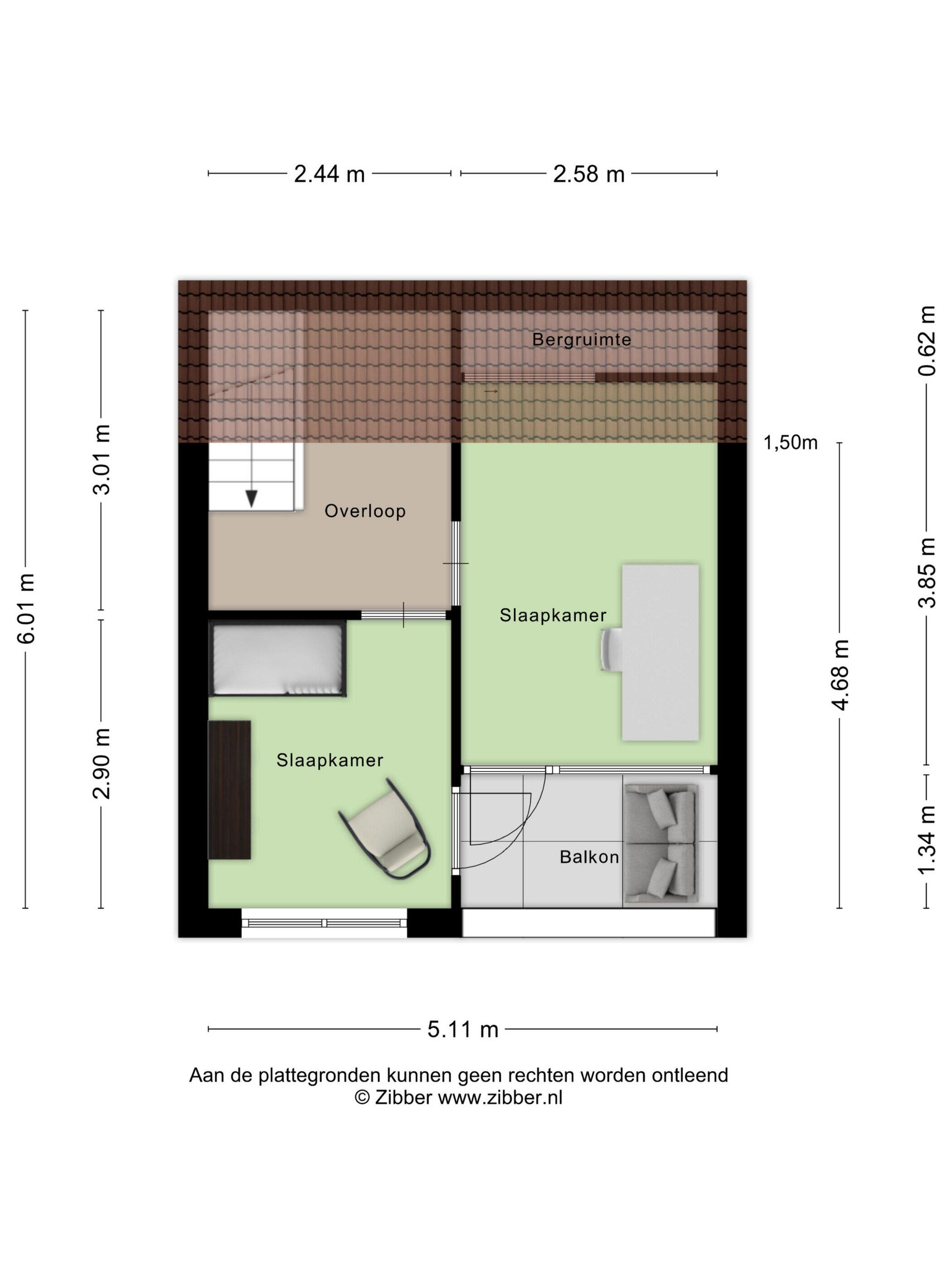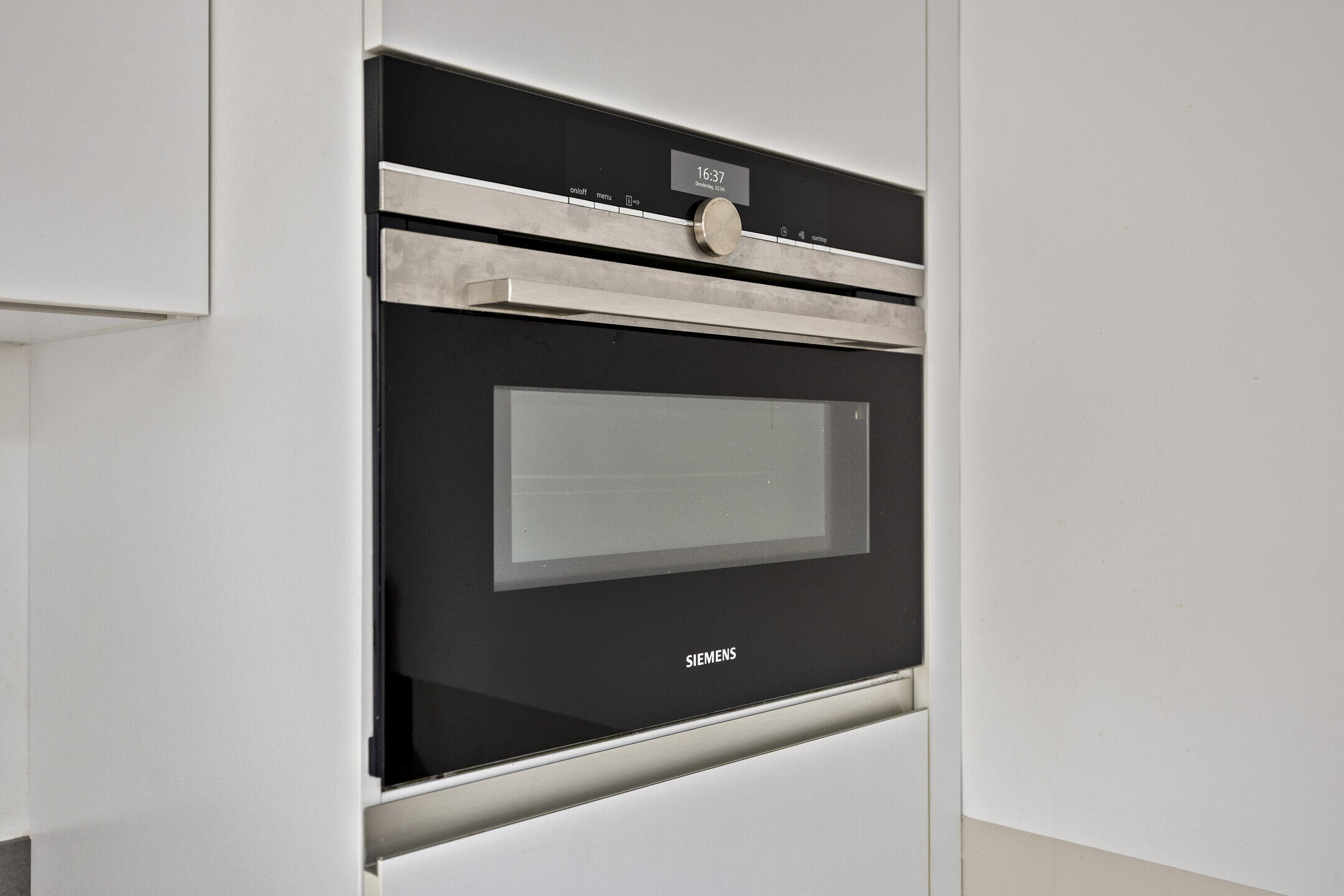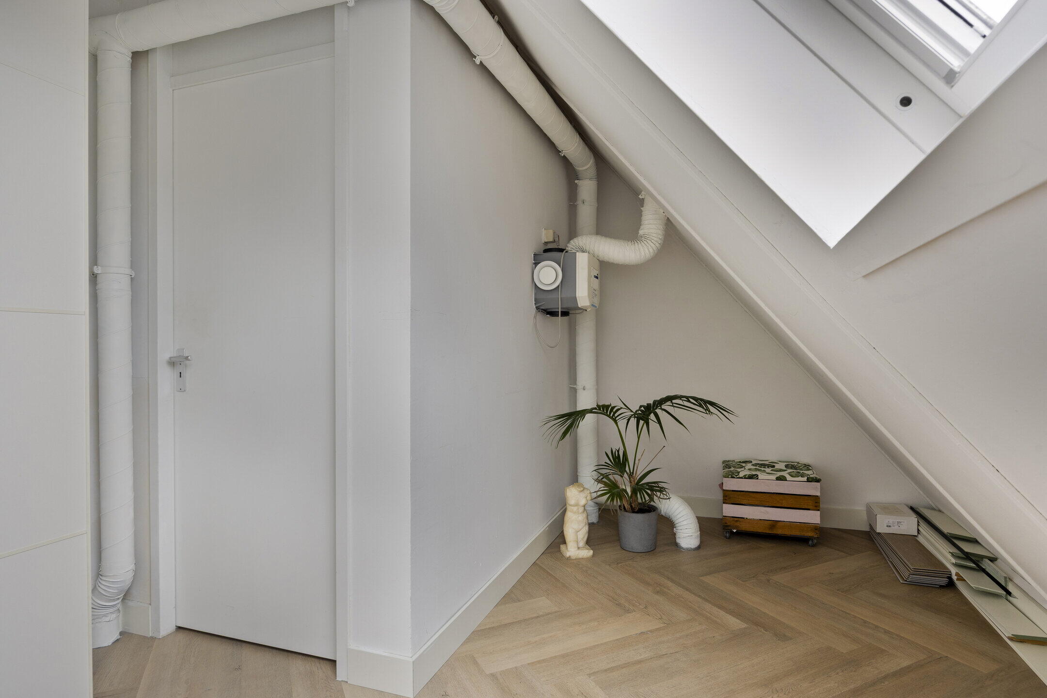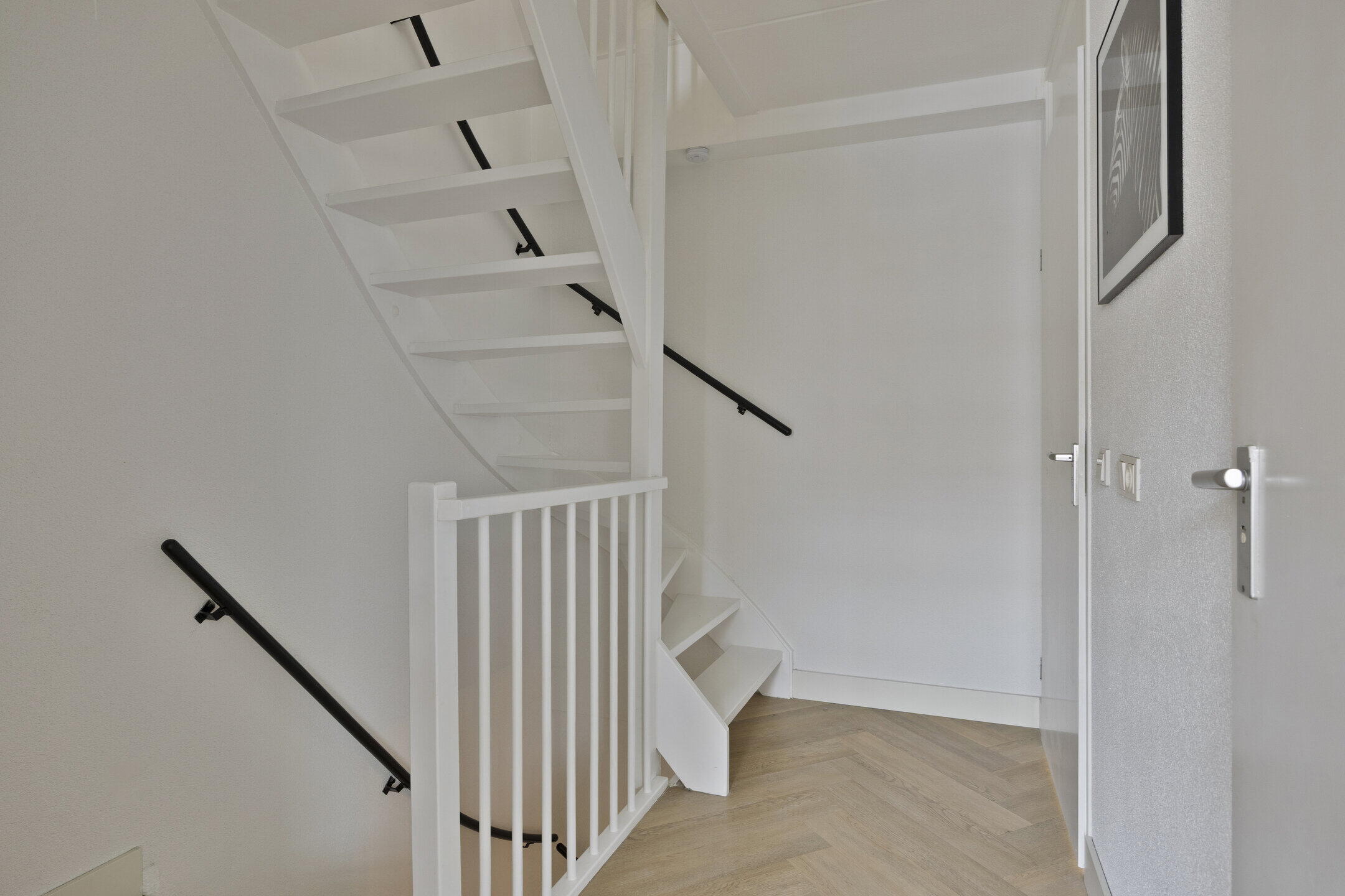 Via een vaste trap bereik je de tweede verdieping. Hier vind je nog eens twee slaapkamers, waarvan één met een balkon — een heerlijke plek om even buiten te zijn. Op de overloop zijn de aansluitingen voor wasmachine en droger aanwezig.