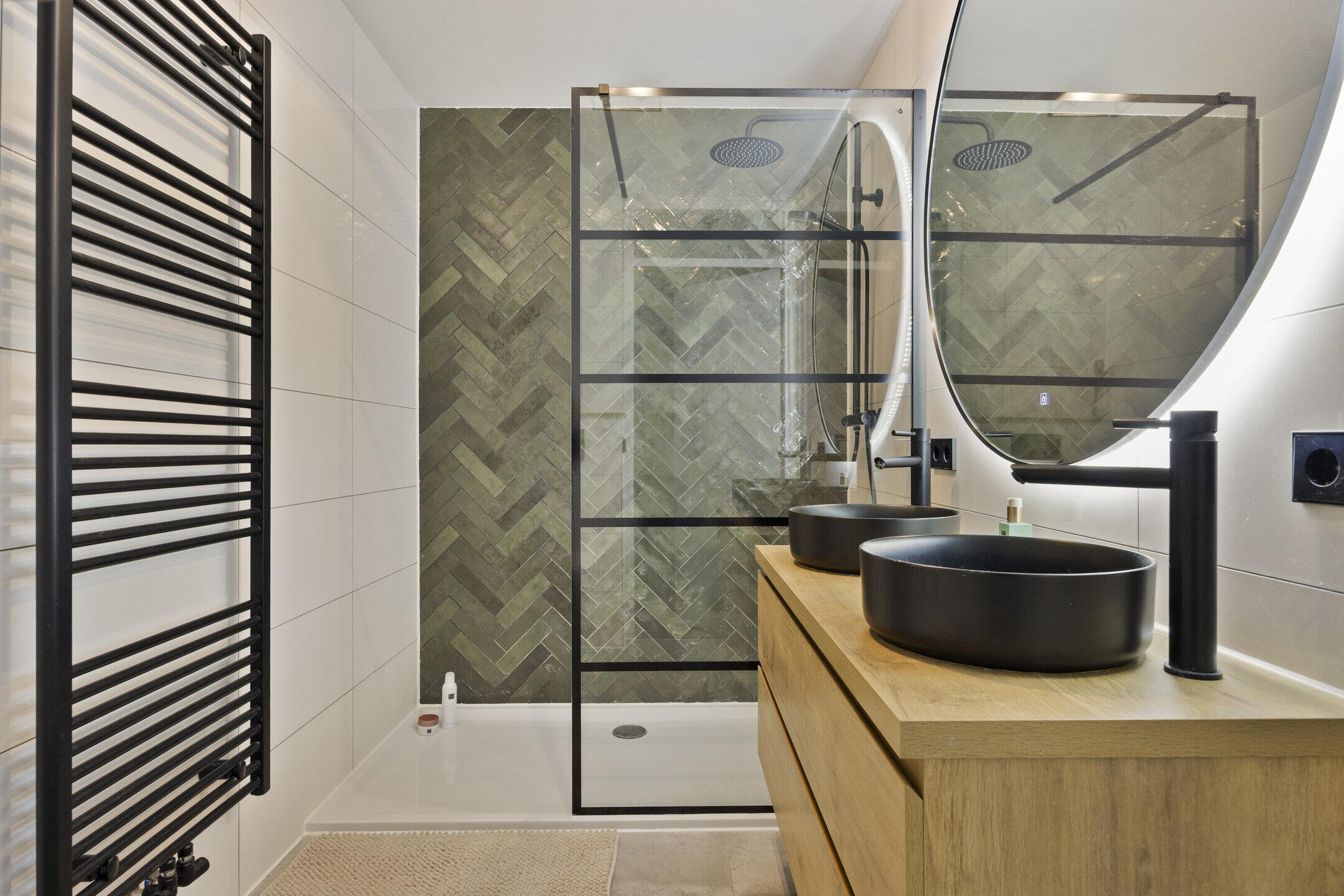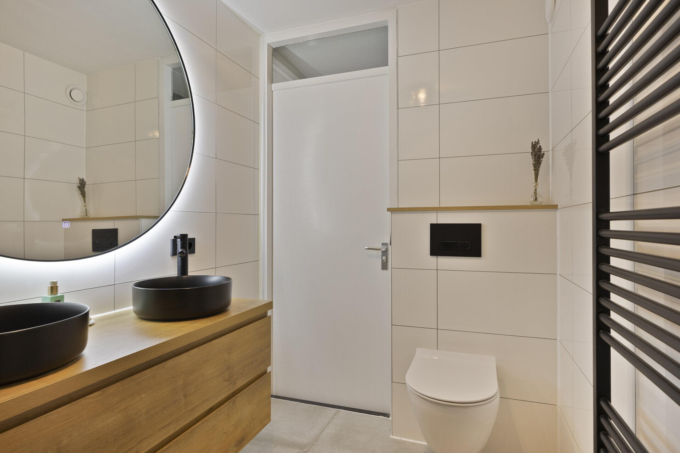 - Toilet, dubbele wastafel, wastafelmeubel, inloopdouche