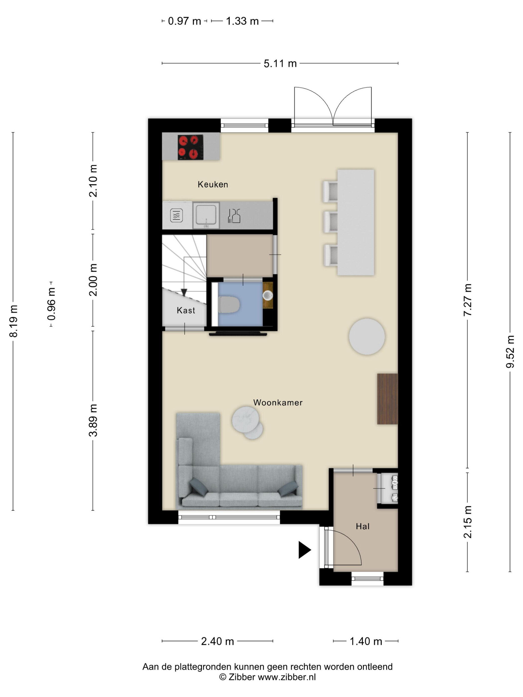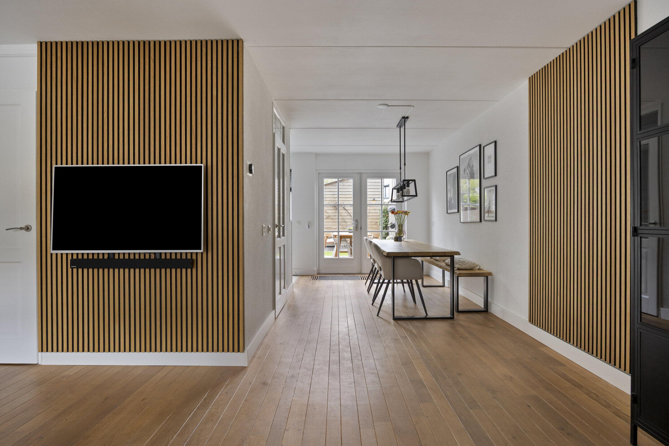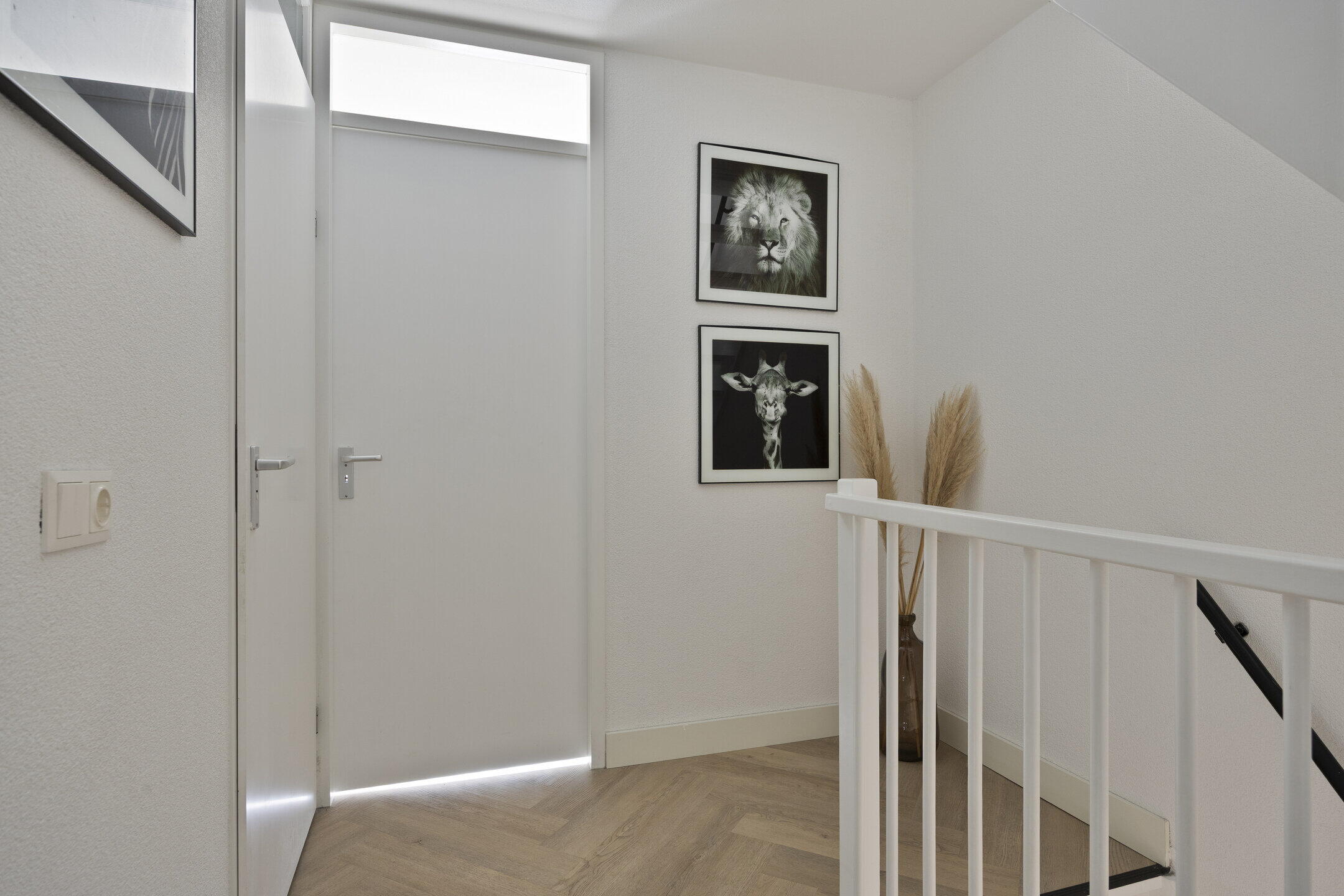 Je komt binnen in een mooie, lichte hal die direct een verzorgde eerste indruk geeft. Vanuit hier heb je toegang tot de woonkamer.